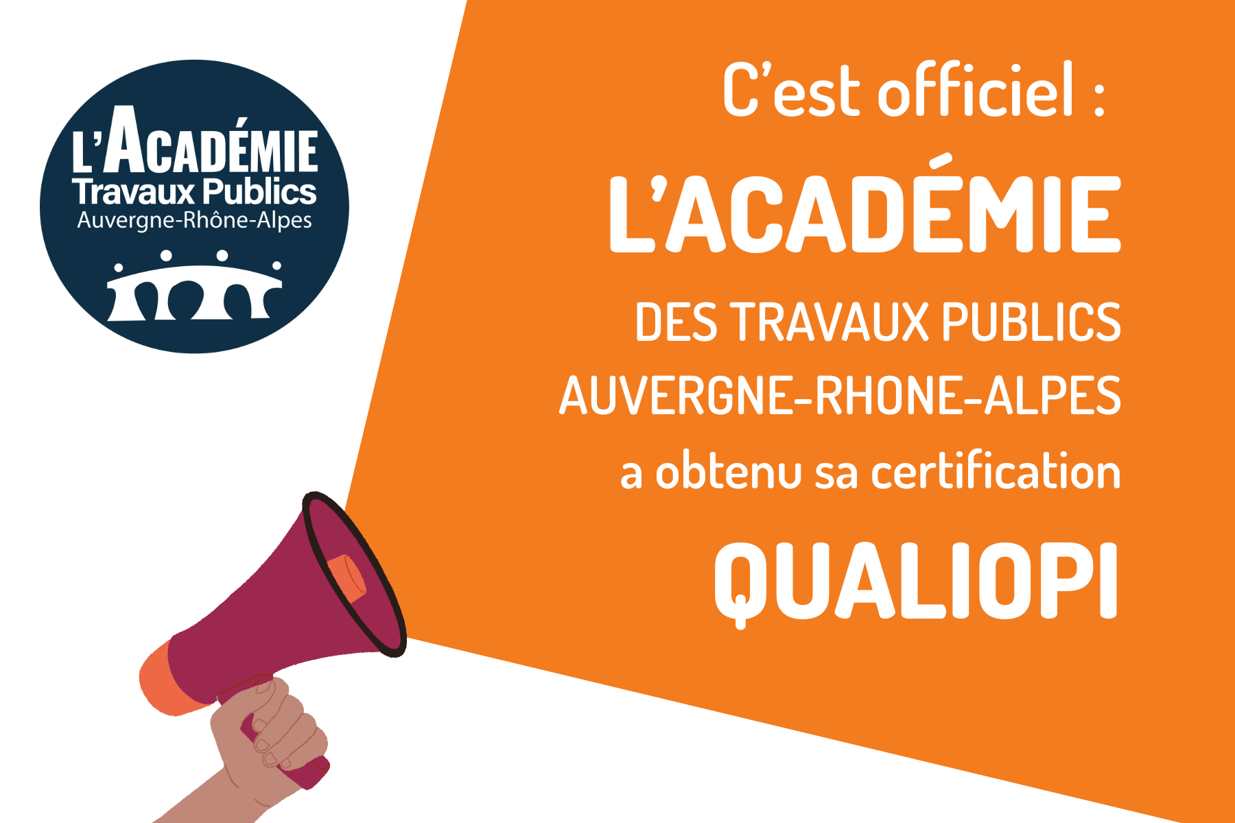 L’Académie des Travaux Publics Auvergne-Rhône-Alpes certifiée Qualiopi !