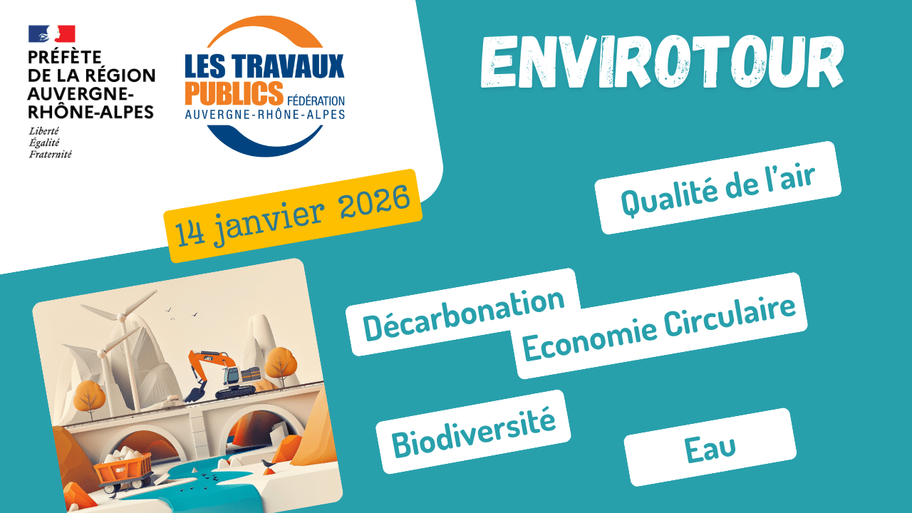 Le 14 janvier 2026, à Villeurbanne, lors de l’Envirotour, organisé par la FRTP AURA et la DREAL, 5 ateliers thématiques et ludiques ont rythmé les échanges autour de grands enjeux du secteur : décarbonation, gestion de l’eau, biodiversité, économie circulaire & qualité de l’air.