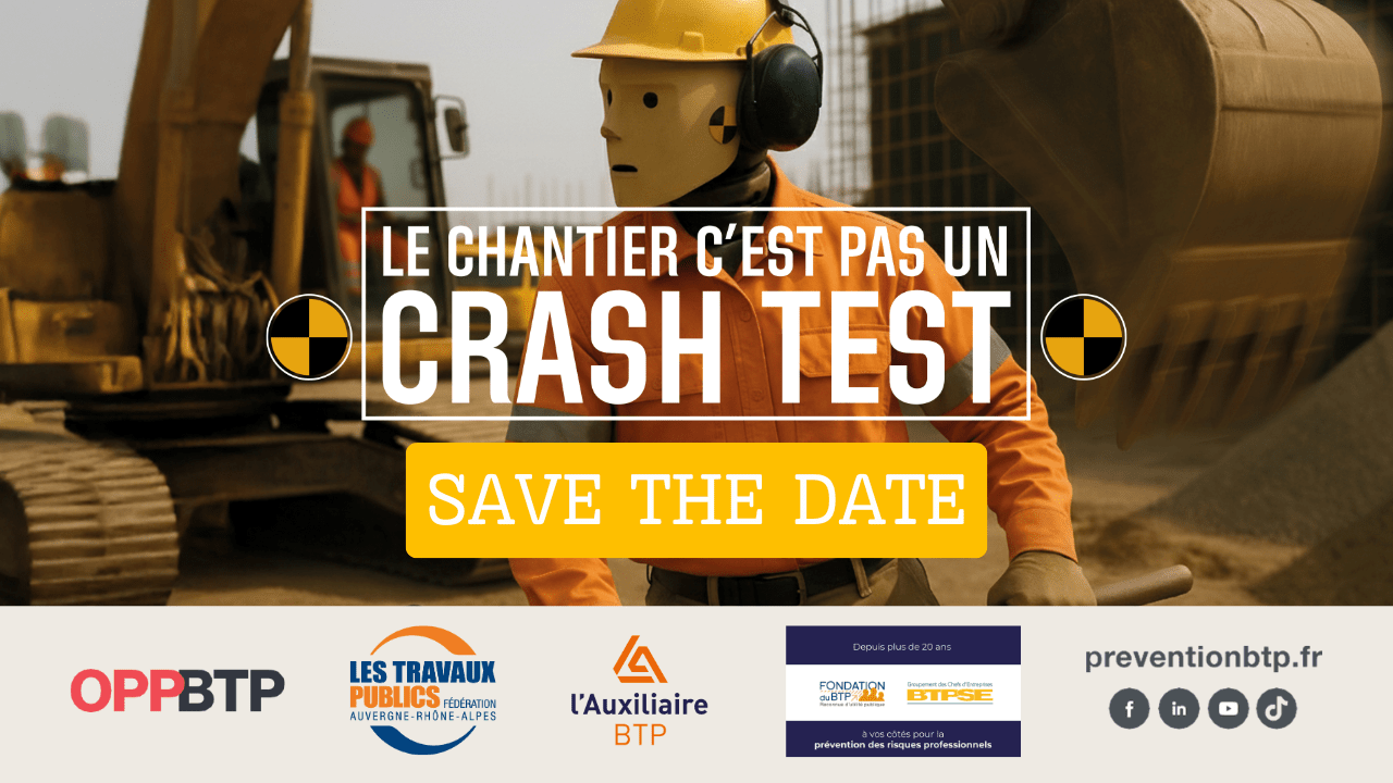 Chefs d’entreprise, encadrants, responsables de chantier : la FRTP Auvergne-Rhône-Alpes vous invite à une matinée inédite dédiée à la prévention des heurts engin-piéton, un risque majeur sur nos chantiers !